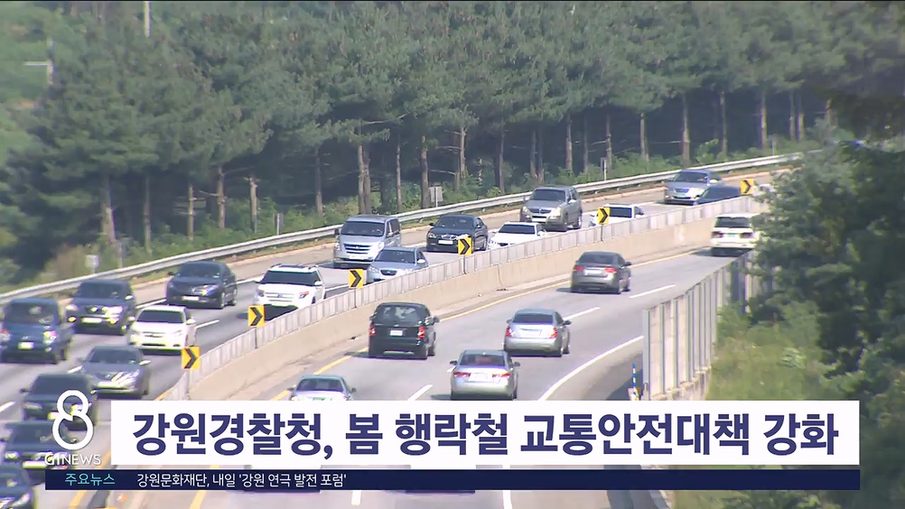 경찰은 강릉 경포와 삼척 맹방 등 봄꽃 축제장 일대 교통 관리와 졸음운전 예방을 위한 알람 순찰, 이동 단속 등을 강화합니다.