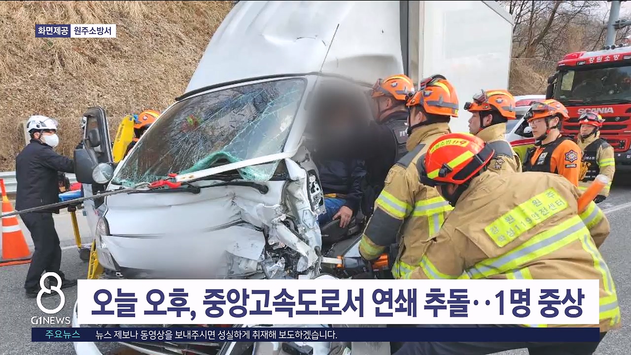 오늘 오후, 중앙고속도로서 연쇄 추돌..1명 중상