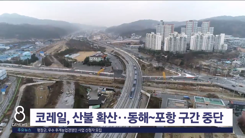 한국철도공사는 경북지역 산불이 확산됨에 따라 동해~포항을 잇는 동해선과 영주~안동~영천을 잇는 중앙선 일부 구간의 열차운행을 첫차부터 안내 시까지 중단한다고 밝혔습니다.