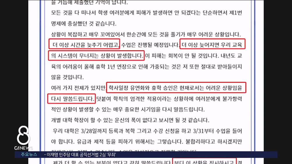 "학사일정 유연화와 휴학 승인은 어려운 상황이다. 부디 이 상황을 직시해달라"고 호소했습니다.