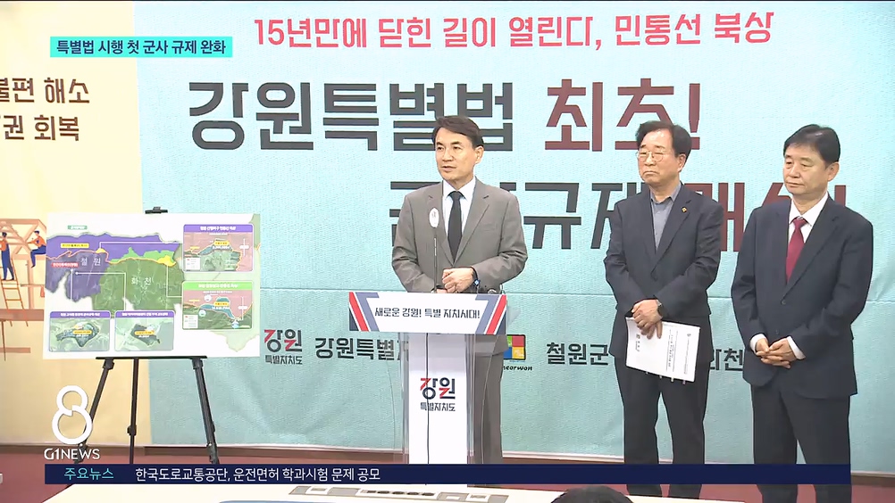 "정말 우리가 4대 규제라고 하는데, 이게 군사 규제에 대해서는 끊임없이 우리가 설득하고 협상하고 이렇게 했는데..강원특별법이 개정된 이후 그 법에 의한 적용을 받아서 군사 규제가 풀린 최초의 사례입니다."