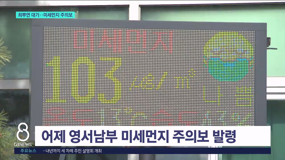 한국환경공단은 어제(25일) 오후 4시를 기해 영서남부 지역에 미세먼지 주의보를 발령하기도 했습니다.