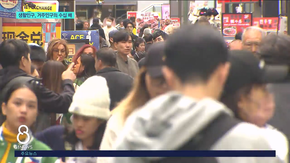 체류인구에 주민등록인구와 외국인등록인구를 포함하는 개념이 생활인굽니다.