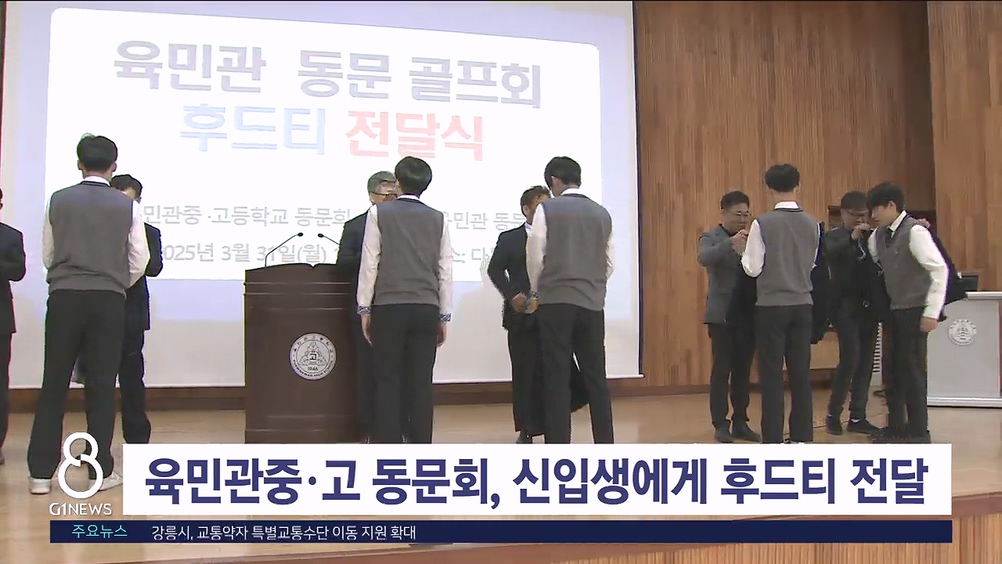 육민관 중·고등학교 동문회가 동문 골프대회 수익금을 모아 고등학교 1학년 신입생에게 후드티를 전달했습니다.
