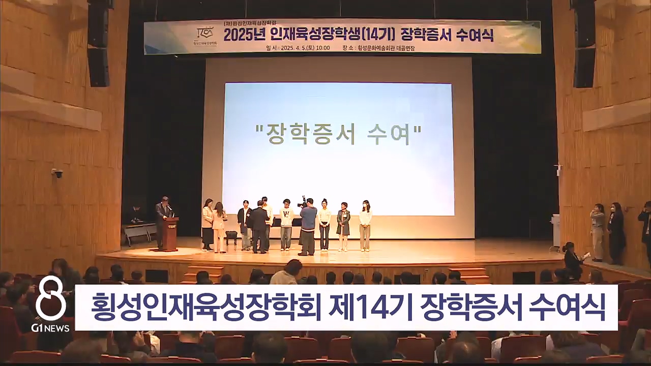 횡성인재육성장학회는 오늘(5일) 횡성문화예술회관에서 제14차 장학증서 수여식을 열고, 지역 학생들에게 장학 증서를 수여했습니다.