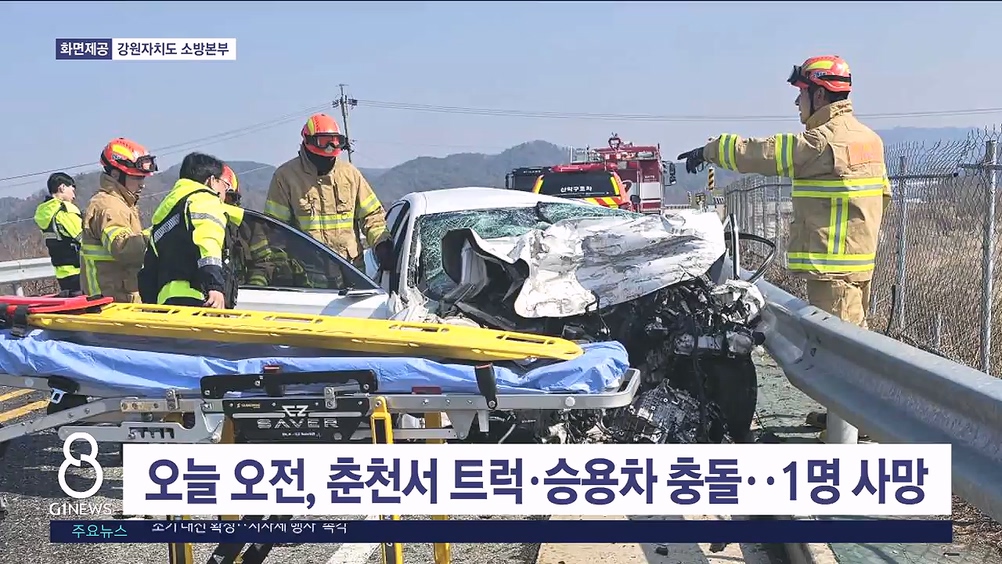 오늘 오전, 춘천서 트럭·승용차 충돌..1명 사망