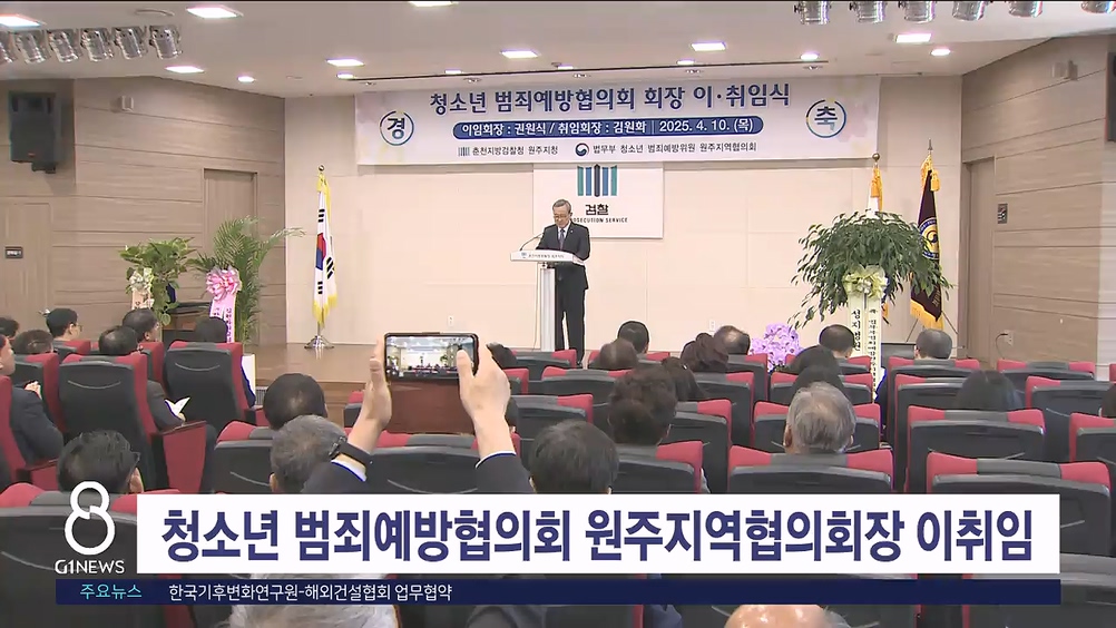 법무부 청소년 범죄예방위원 원주지역협의회 회장 이취임식이 오늘(10일) 춘천지검 원주지청 2층 대회의실에서 열렸습니다.