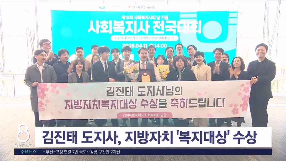 김진태 강원자치도지사가 서울 코엑스에서 열린 '제19회 사회복지사의 날' 기념식에서 지방자치 복지대상 광역자치단체 부문 대상을 수상했습니다.