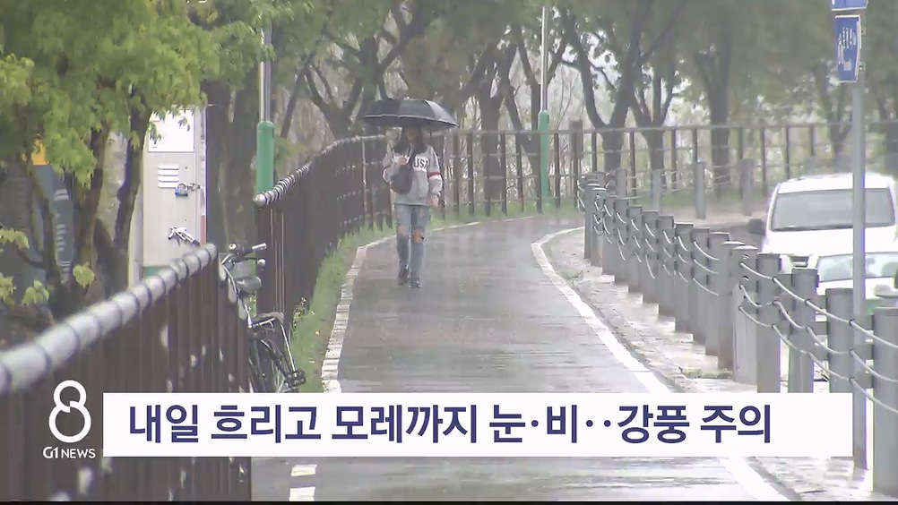 내일 흐리고 모레까지 눈·비··강풍 주의