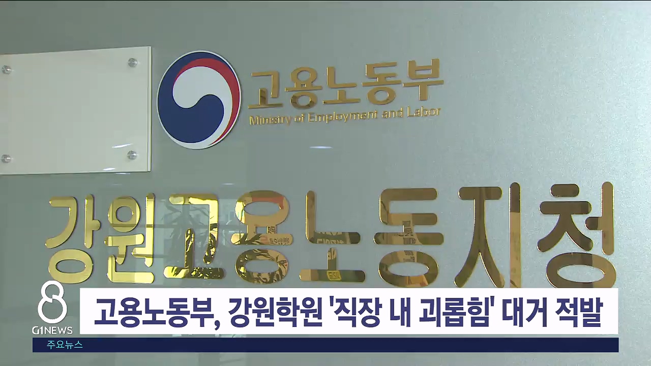 고용노동부, 강원학원 '직장 내 괴롭힘' 대거 적발