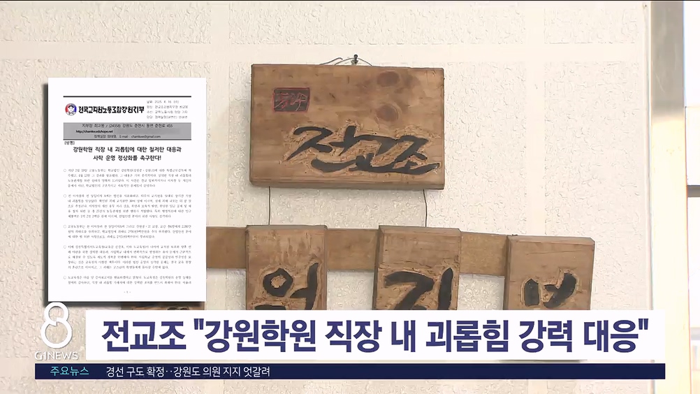 최근 불거진 강원학원 직장 내 괴롭힘 사건과 관련해 전국교직원노동조합 강원지부가 성명을 내고 강력한 조치를 촉구했습니다.