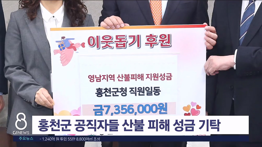 홍천군 공직자들이 영남지역 산불 피해지원을 위한 특별모금 캠페인을 벌여 성금 736만 원을 전달했습니다.