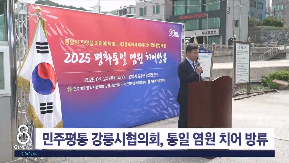 민주평화통일자문회의 강릉시협의회가 남북한 평화 통일과 생명 가치 실현을 위한 치어 방류식을 강릉 안인진 연안에서 가졌습니다.