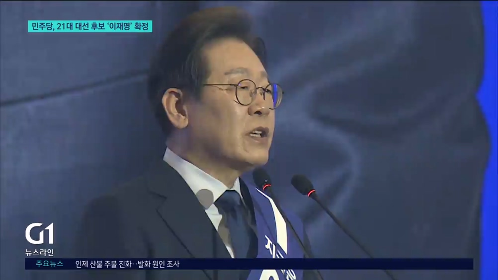 “지금 이 순간부터 이재명은 민주당의 후보이자 내란 종식과 위기 극복, 통합과 국민 행복을 갈망하는 모든 국민의 후보입니다. 더 낮은 자세로 정치의 사명이자 대통령의 제1과제인 국민통합 책임을 다하겠습니다.”