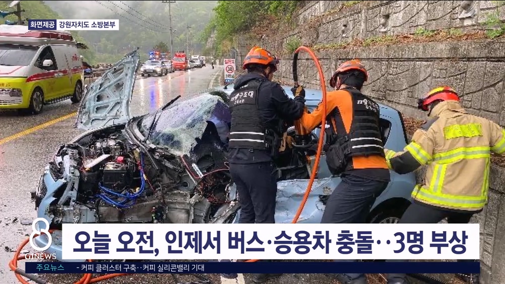오늘 오전, 인제서 버스·승용차 충돌..3명 부상