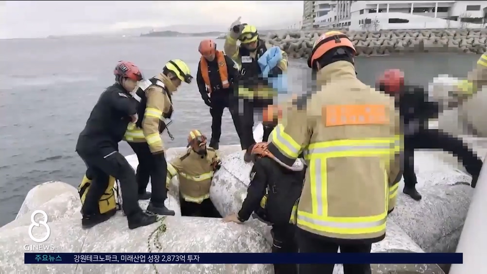 지난 주말, 속초 외옹치항에서 산책 중이던 60대 여성이 테트라포드 위에 올랐다 발을 헛디뎌 떨어졌고,