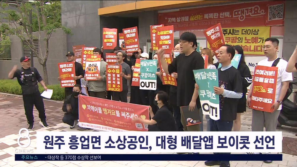 원주 흥업면 일대 소상공인들이 대형 배달앱에 대한 보이콧을 선언했습니다.