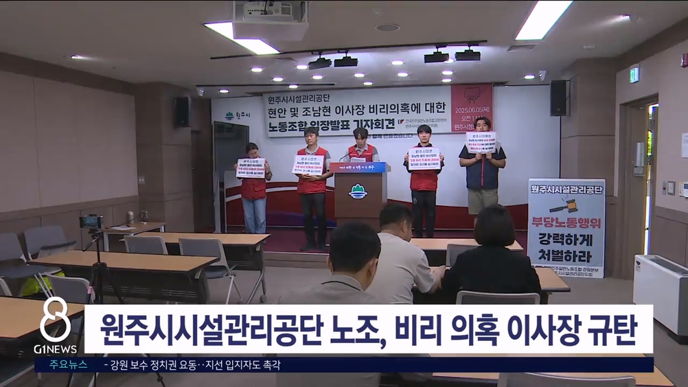 전국민주일반노동조합 강원본부 원주시시설관리공단지회는 오늘(05일) 기자회견을 열고 원주시시설관리공단 이사장을 규탄했습니다.