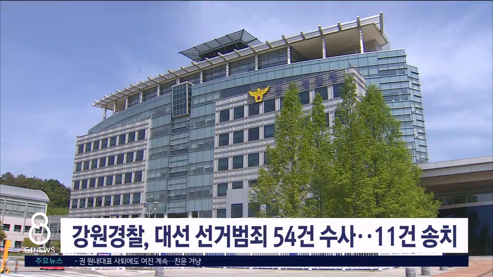 강원경찰청이 제21대 대통령 선거와 관련해 지난 3일까지 모두 54건의 공직선거법 위반 사건을 수사해 이 중 11건을 송치했습니다.