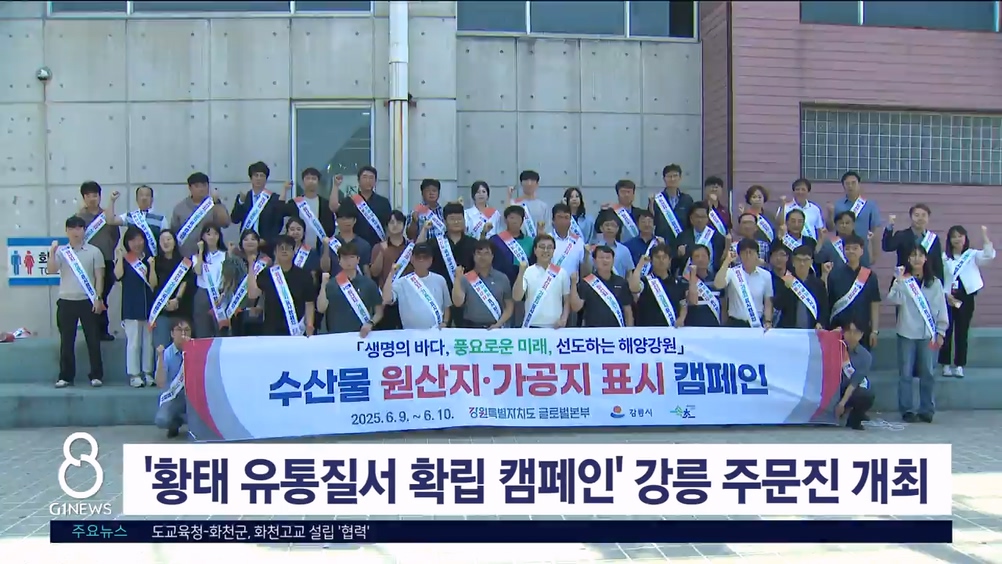 최근 어려움을 겪고 있는 도내 황태 업계를 돕기 위한 '황태 유통질서 확립 캠페인'이 강릉 주문진 전통시장에서 열렸습니다.