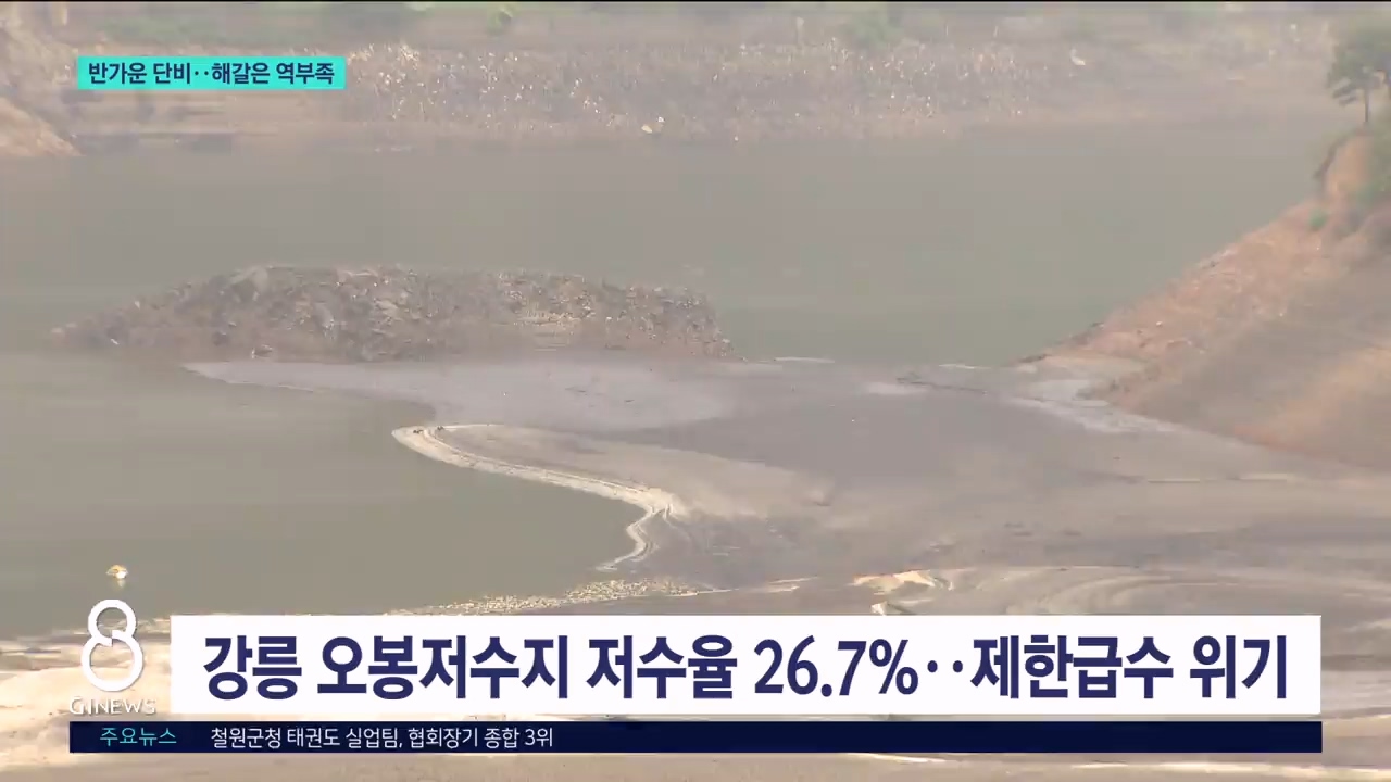 현재 강릉시 상수원인 오봉저수지의 저수율은 제한급수 경계를 겨우 넘긴 26.7%.