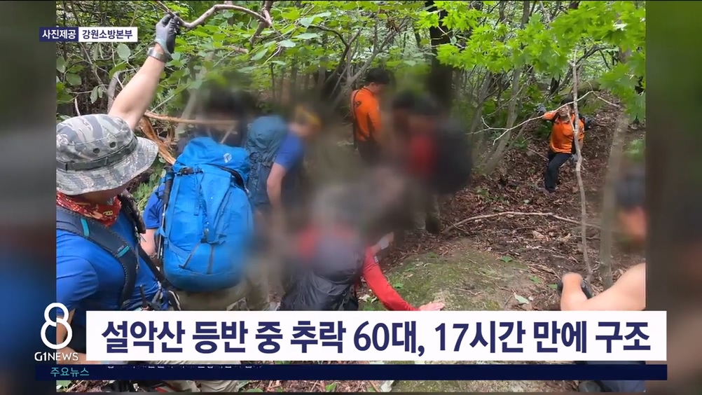 어제(20일) 오후 5시 55분쯤 인제군 북면 설악산 소승폭포 인근에서 60대 남성이 등반 중에 3m 아래로 떨어졌다가 17시간여 만에 구조됐습니다.