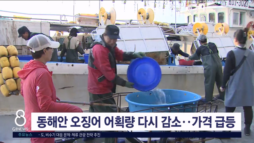 강원자치도 글로벌본부에 따르면, 지난 16일부터 22일까지 도내 오징어 어획량은 29t으로 전주 127톤의 23% 수준에 머물렀습니다.