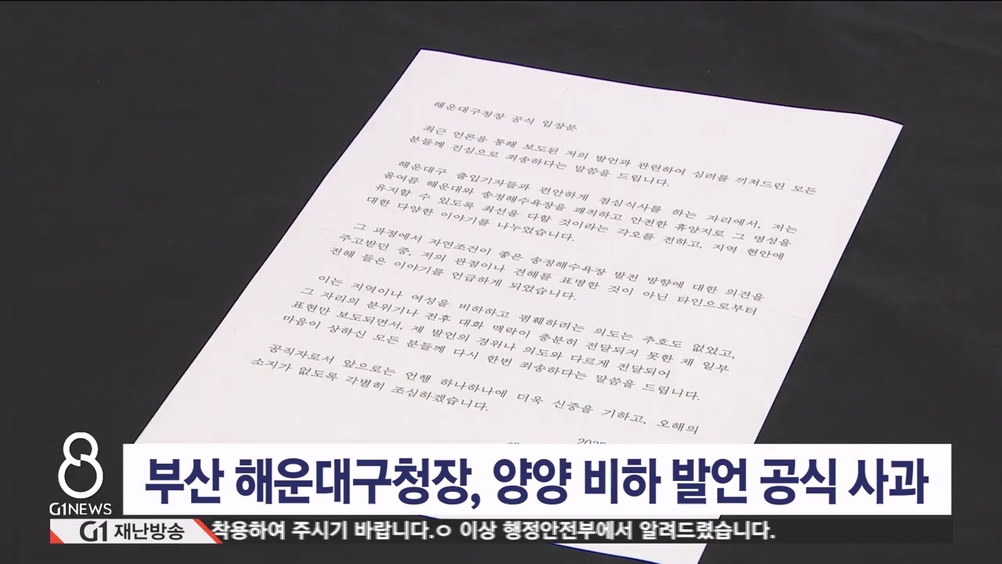 부산 해운대구청장 양양 비하 발언 공식 사과