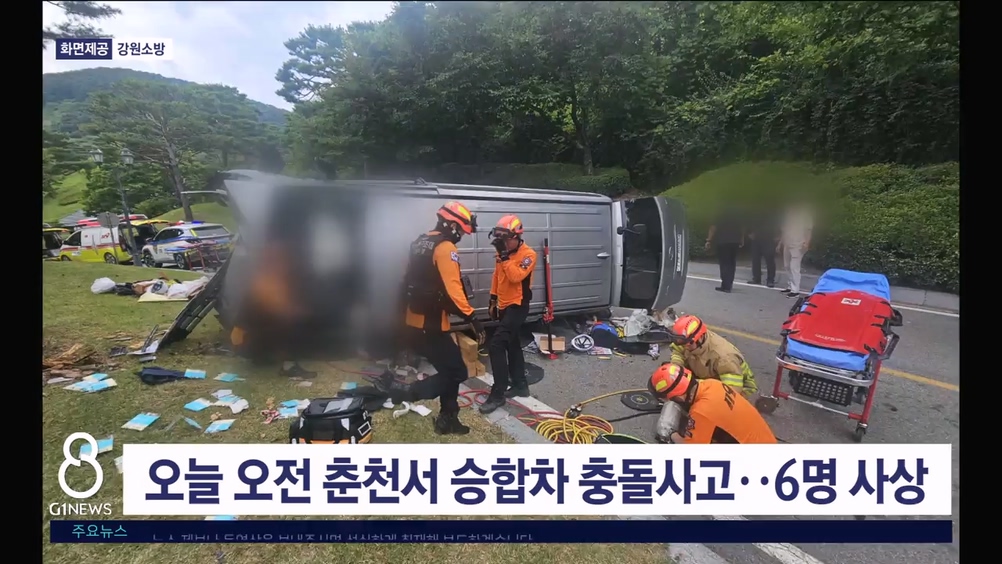 오늘 오전 춘천서 승합차 충돌사고..6명 사상