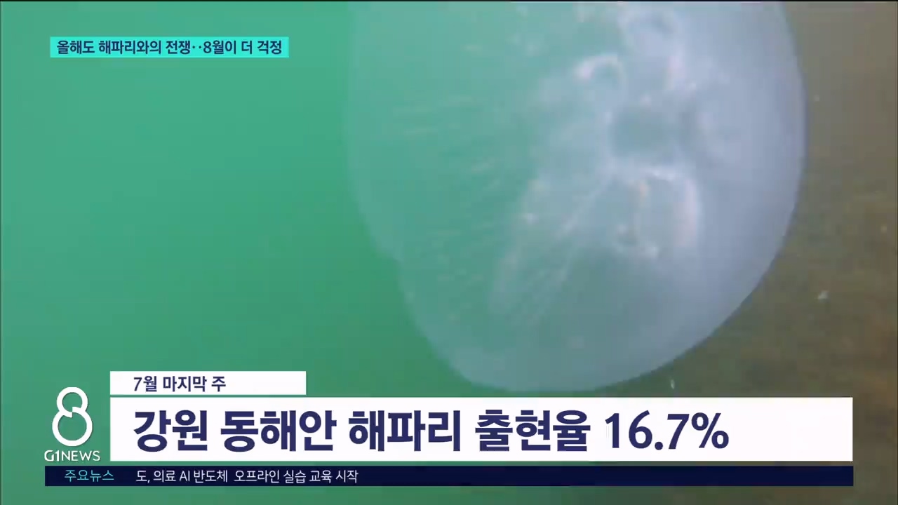 강원 동해안의 경우 아직은 해파리가 수가 많지 않지만 본격적으로 수온이 오르는 이달부터 대량 출현이 예상돼 비상이 걸렸습니다.