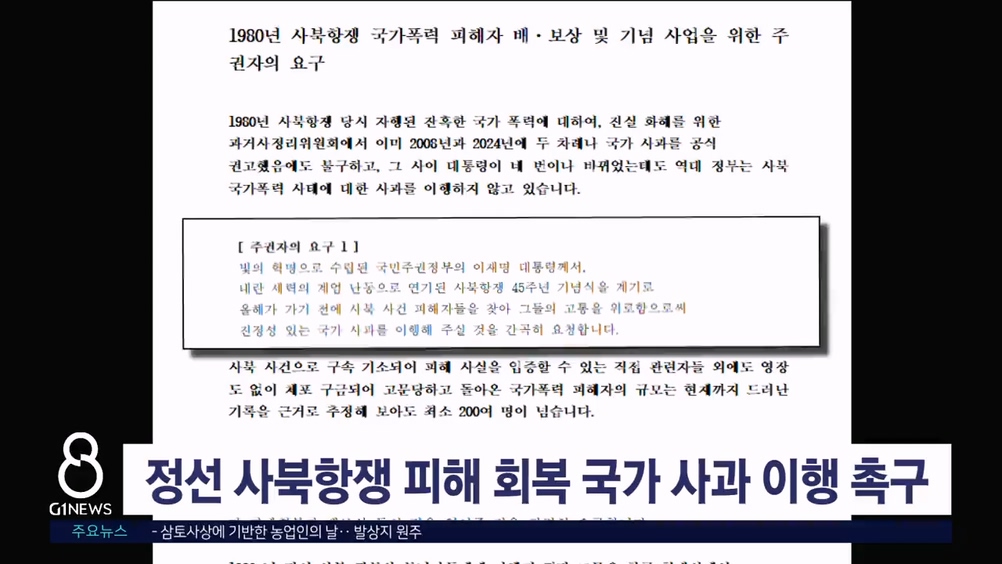 강원민주재단과 통일강원연구원 등 도내 주요 사회단체들도 주권자 100인 성명을 통해 사북항쟁에 대한 국가 사과를 요구할 계획입니다.