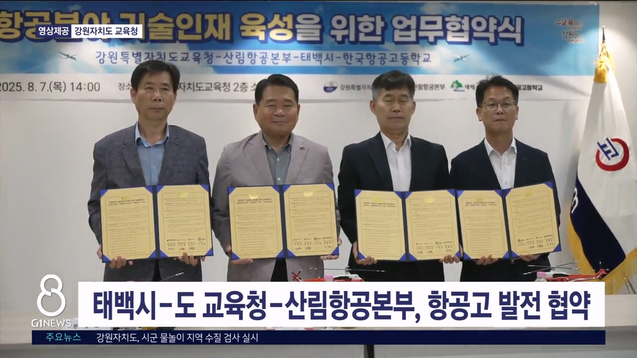 태백시는 오늘(7일) 도교육청과 산림항공본부, 한국항공고등학교와 업무협약을 체결했습니다.
