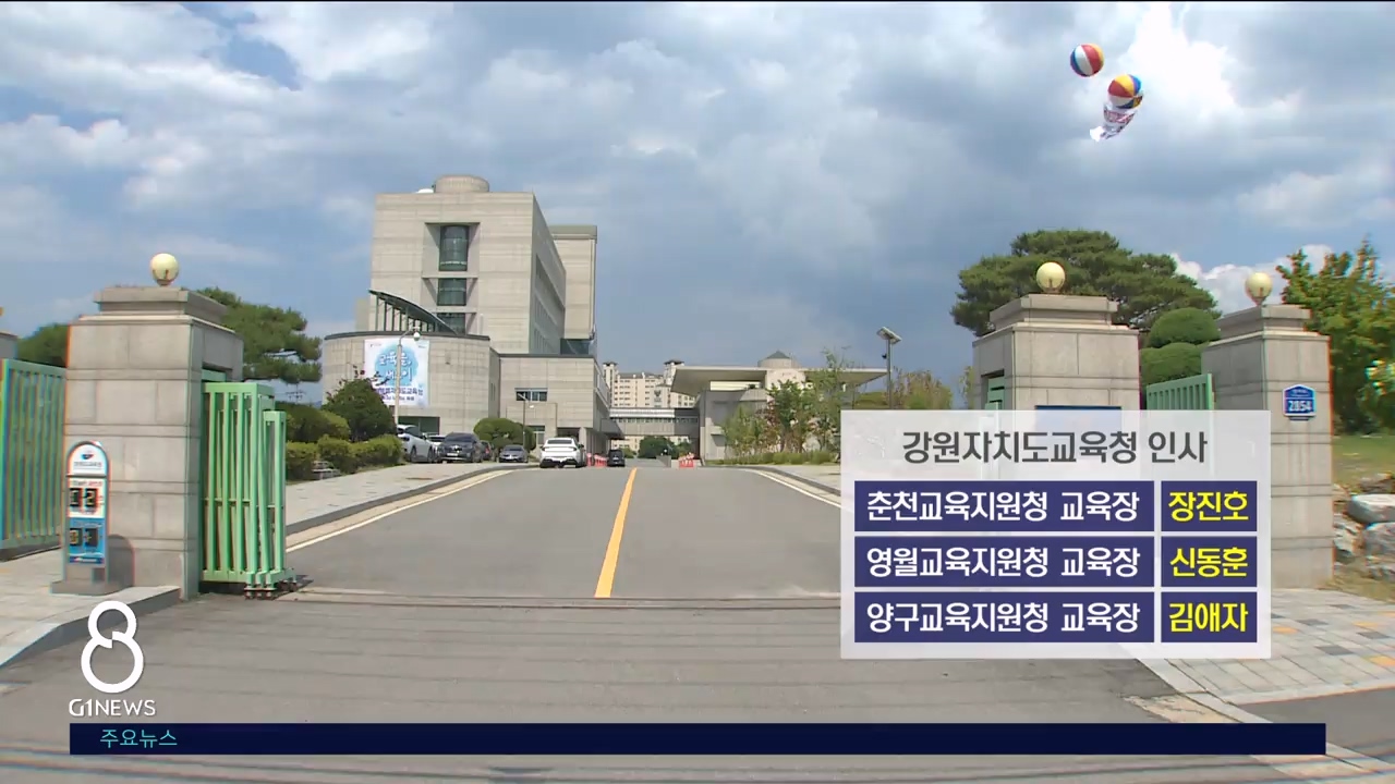이번 인사에서는 춘천교육지원청 교육장에 장진호, 영월교육지원청 교육장에 신동훈, 양구교육지원청 교육장에 김애자 장학관을 각각 임명했습니다.