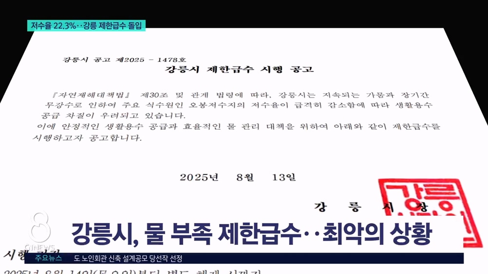 역대급 여름 가뭄에 시달리는 강릉시가 물 부족 상황을 견디지 못하고 제한급수에 들어갔습니다.