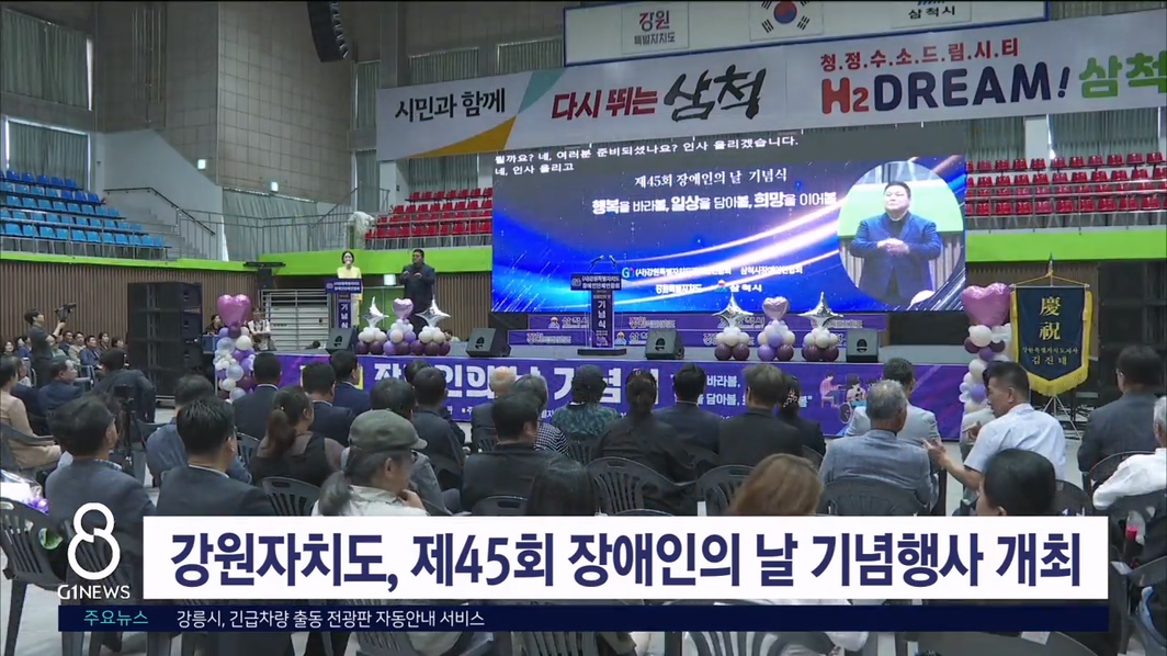 강원자치도가 오늘(3일) 삼척 실내체육관에서 장애인과 자원봉사 등 1,000여 명이 참석한 가운데 '제45회 장애인의 날' 기념식을 열었습니다.