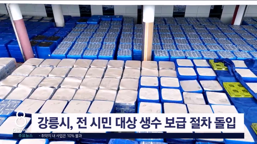 강릉시는 생수를 비축한 강릉아이스아레나에서 면·동 권역별로 생수를 옮기는 작업에 착수했다고 밝혔습니다.