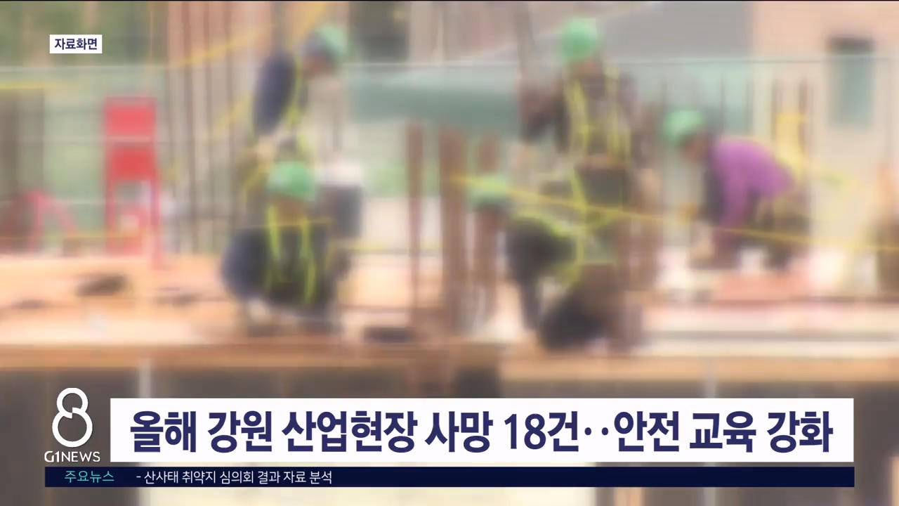 올해 강원지역에서 발생한 산업현장 사망사고가 18건인 것으로 나타났습니다.