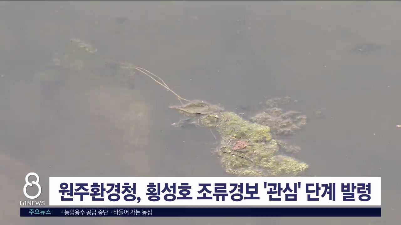 원주지방환경청이 오늘(4일) 오후 3시를 기해 횡성호에 조류경보 '관심' 단계를 발령했습니다.