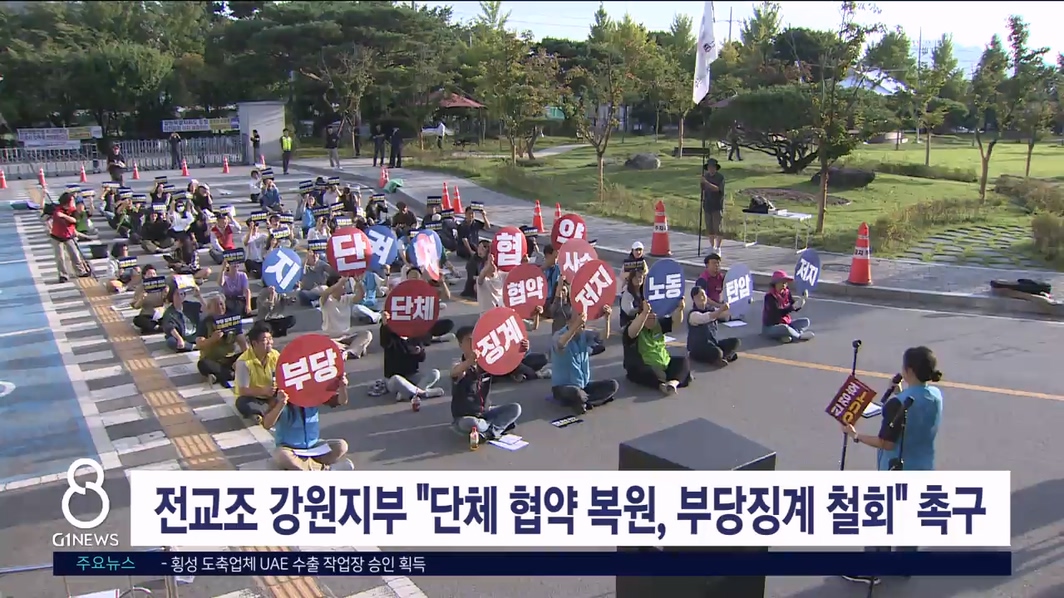 전국교직원노동조합 강원지부는 오늘 도교육청 앞에서 기자회견을 열고 단체협약 복원과 부당 징계 철회를 촉구했습니다.