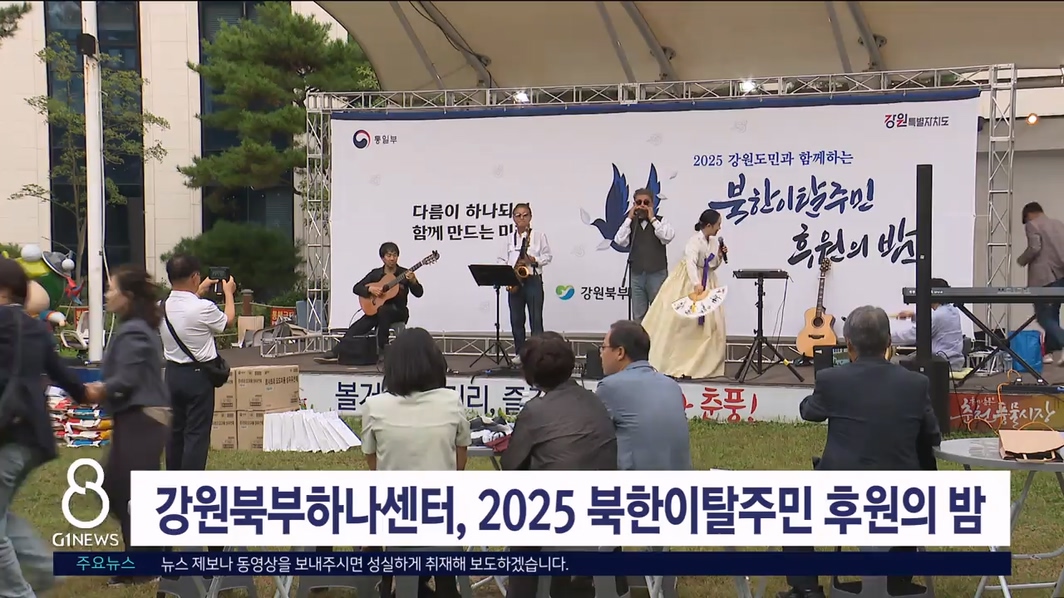 강원도민과 함께하는 '2025 북한이탈주민 후원의 밤' 행사가 오늘(30일) 춘천 풍물시장 야외잔디공원에서 열렸습니다.
