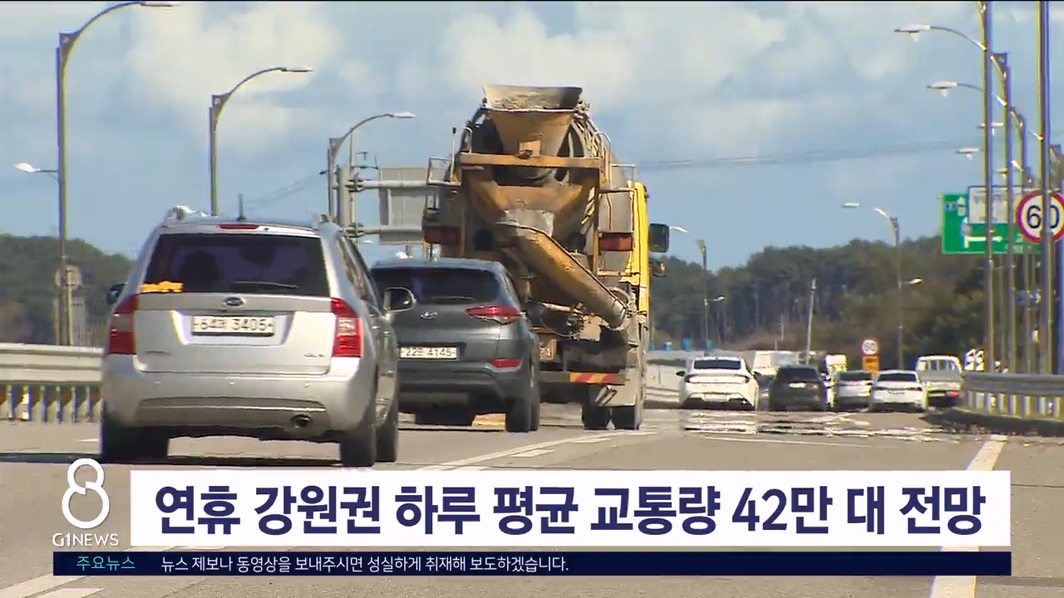 올해 추석 연휴 동안 강원권의 하루 평균 교통량은 42만 대에 이를 것으로 전망됐습니다.