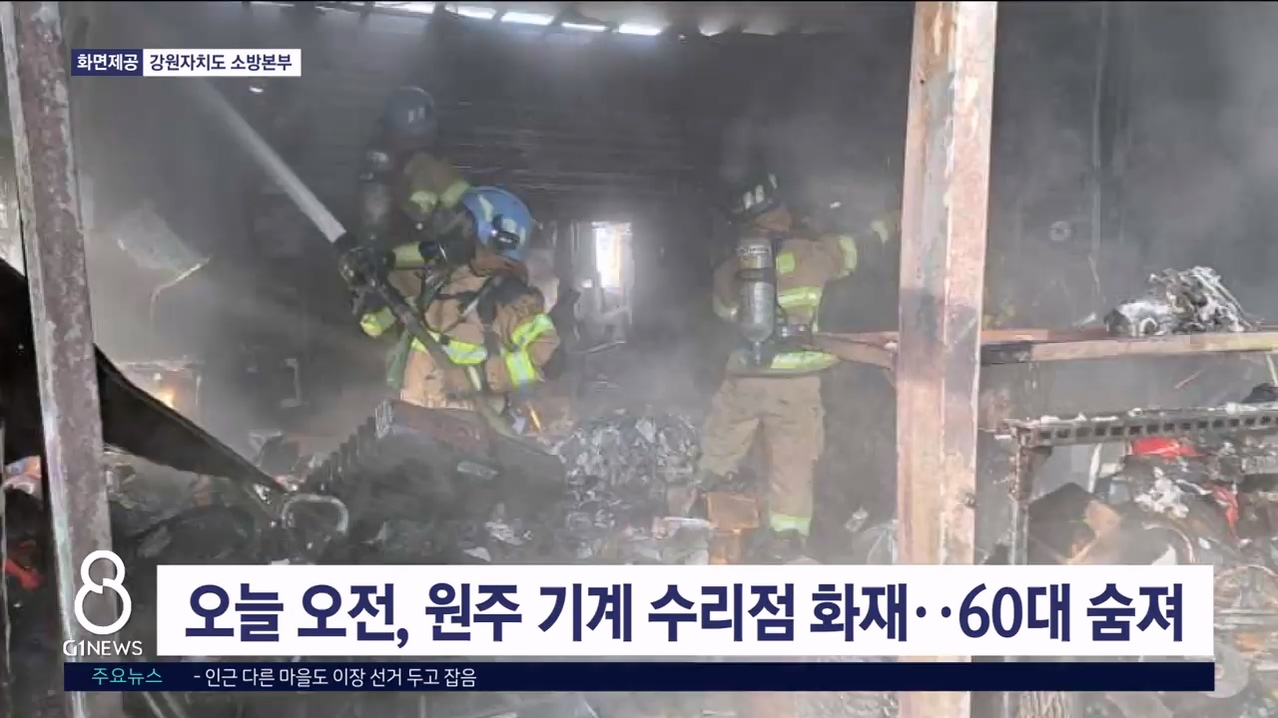 오늘 오전, 원주 기계 수리점 화재..60대 숨져