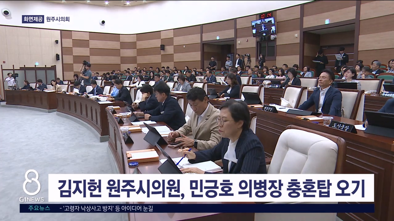 김지헌 원주시의원은 오늘 본회의 5분 자유발언을 통해 "민긍호 의병장 충혼탑 비문에 '대장' 한자 표기가 잘못됐다"고 지적했습니다.