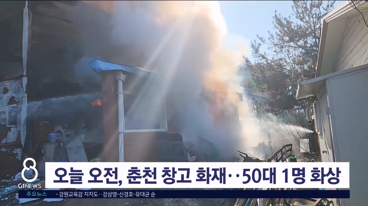 오늘 오전 춘천 업체 창고서 화재..50대 1명 화상