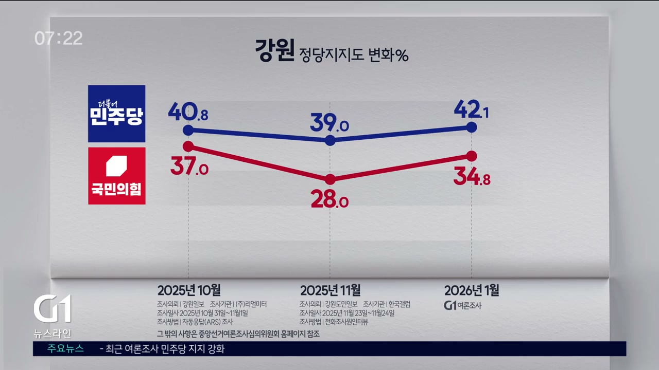 지난 5일 강원도지사 선거 여론조사 결과와 오늘 춘천시장 선거 여론조사 결과를 보면 강원도에서도 민주당의 강세는 뚜렷해 보입니다.