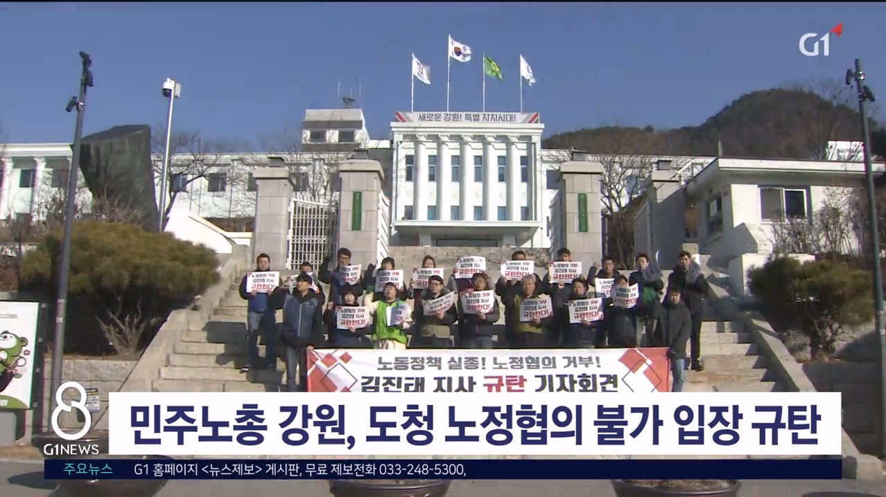 민주노총 강원지역본부는 오늘(7일) 도청 앞에서 기자회견을 열고 도의 노정협의 불가 입장을 규탄했습니다.