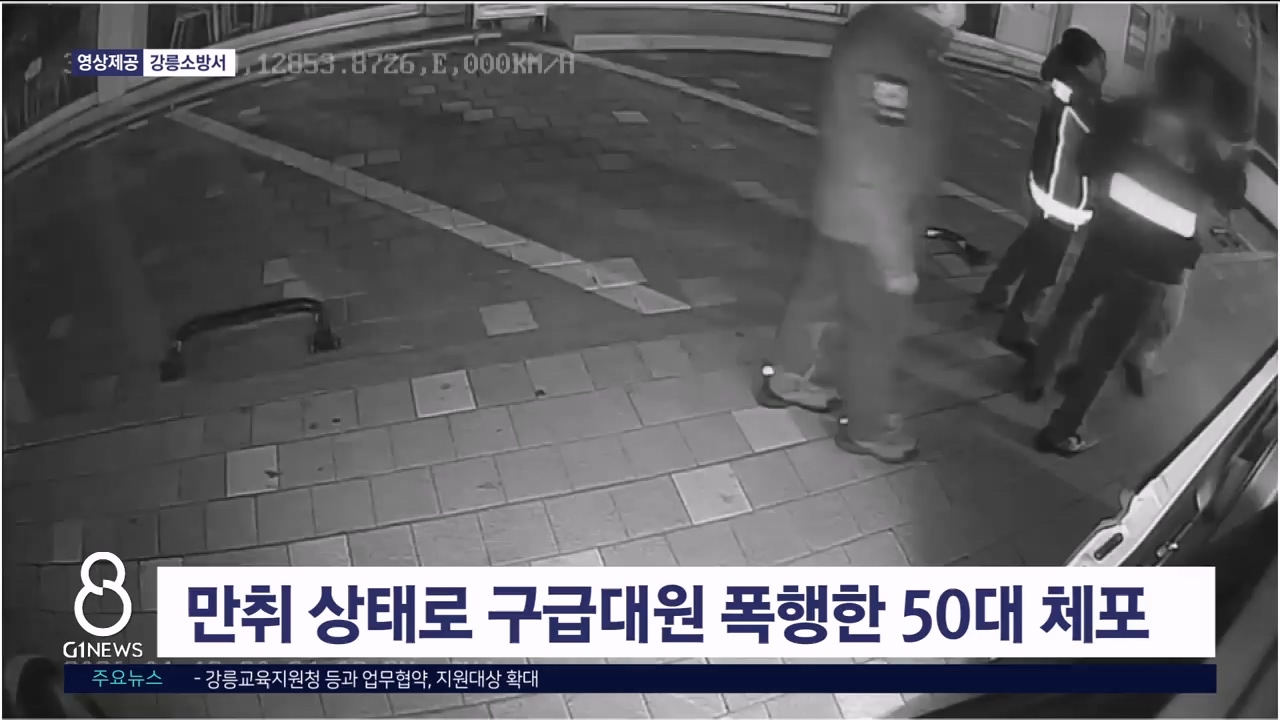A씨는 어제(13일) 오후 8시 24분쯤 강릉시 옥천동의 한 거리에서 출동한 구급 대원의 멱살을 잡고 주먹을 휘두른 혐의를 받고 있습니다.