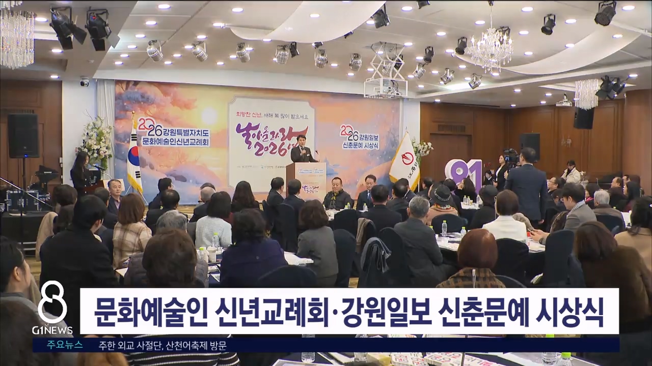 강원일보와 강원예총 등이 공동 주최한 '2026년 강원자치도 문화예술인 신년교례회'와 '강원일보 신춘문예 시상식'이 오늘(14일) 춘천 베어스호텔에서 열렸습니다.