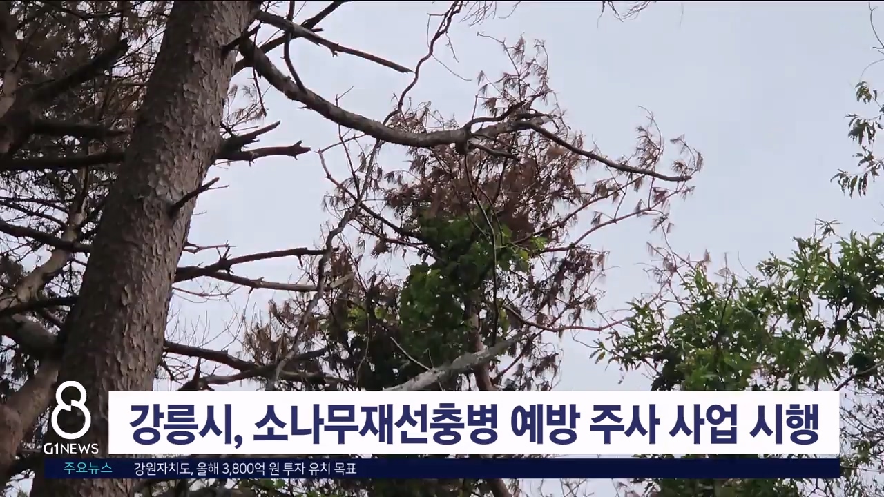강릉시가 소나무재선충병 확산을 방지하기 위한 예방 나무주사 사업을 벌입니다.