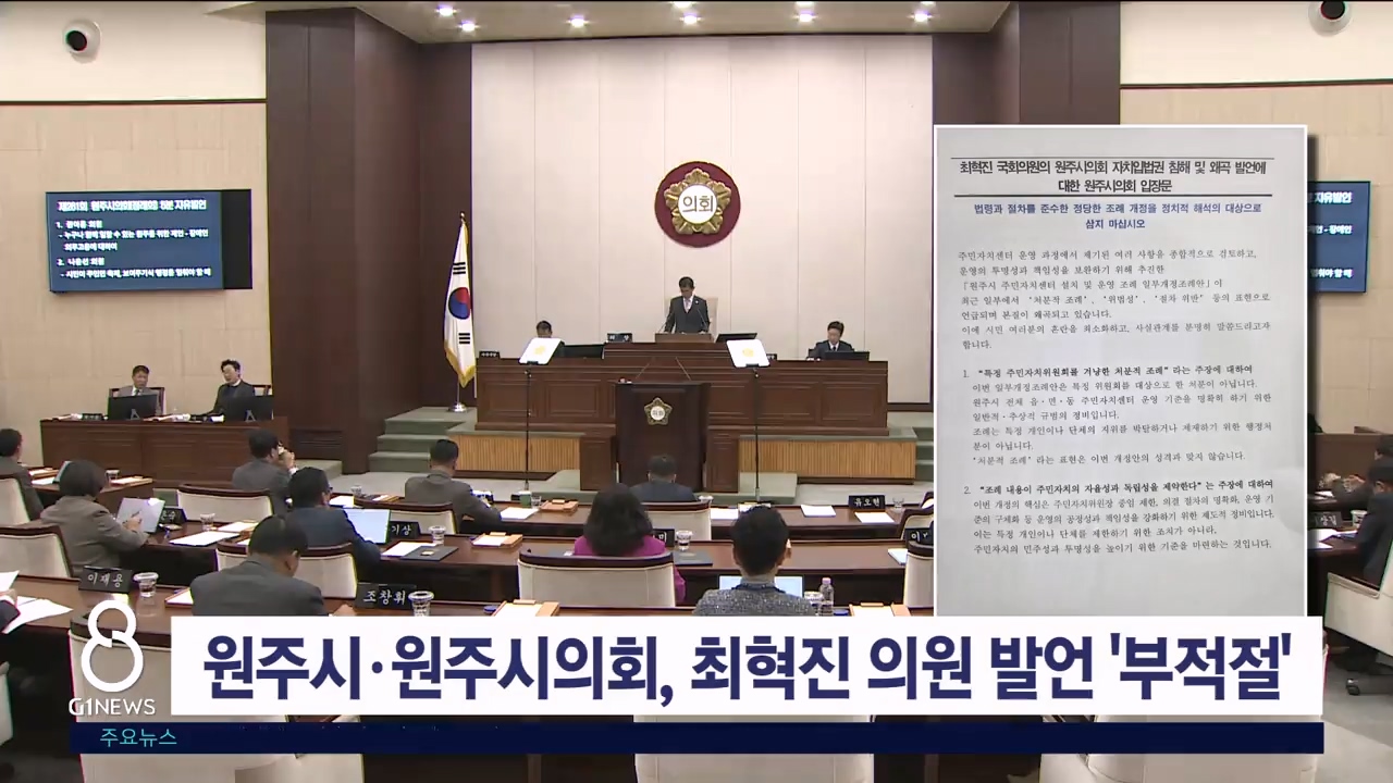 원주시는 최근 입장문을 내고 "관련 발언은 사실과 다른 내용으로 원주시 행정을 왜곡하고 공직 사회의 명예를 훼손한 매우 부적절한 발언"이라고 반박했습니다.